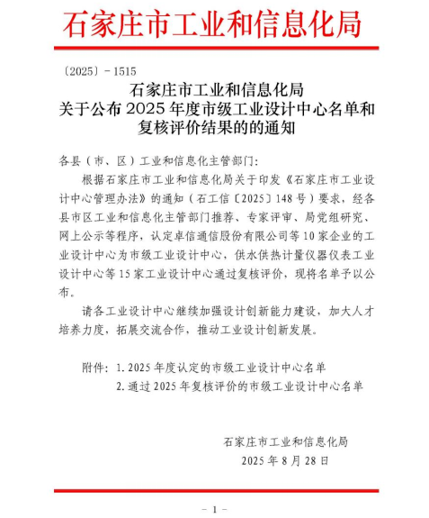 喜報!河北拓普電氣榮獲“石家莊市級工業(yè)設(shè)計中心”稱號